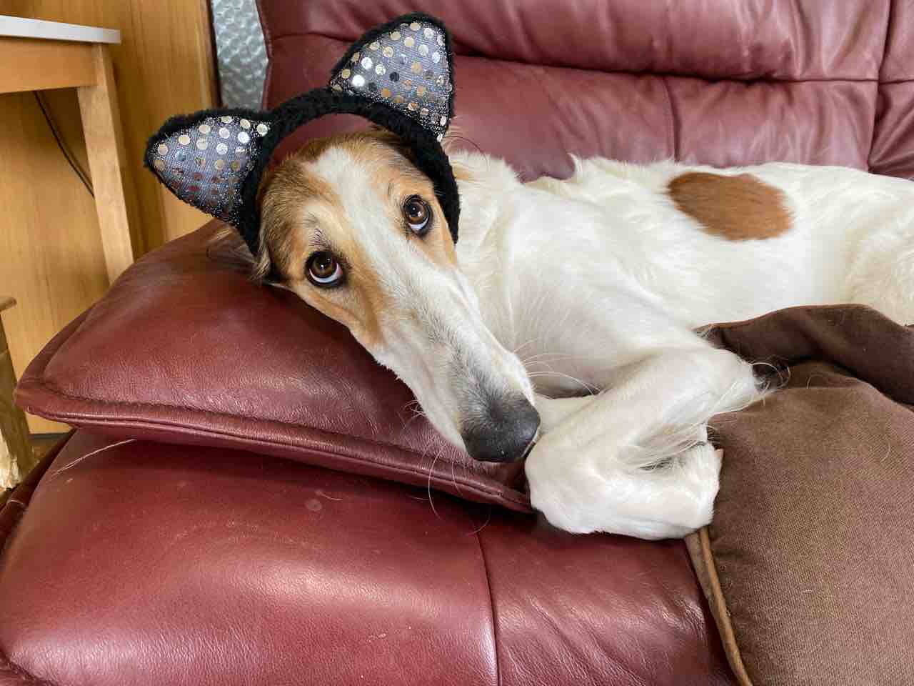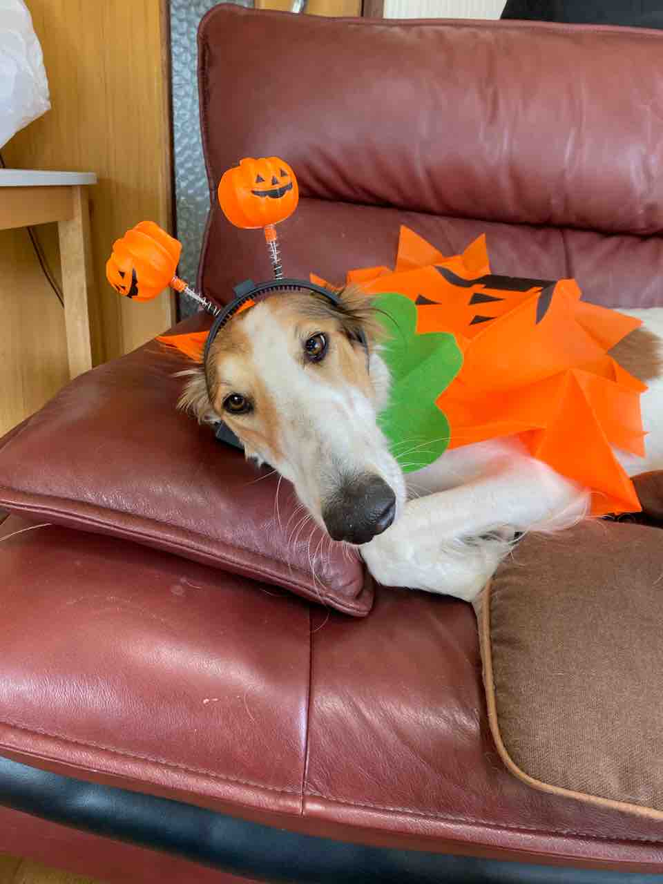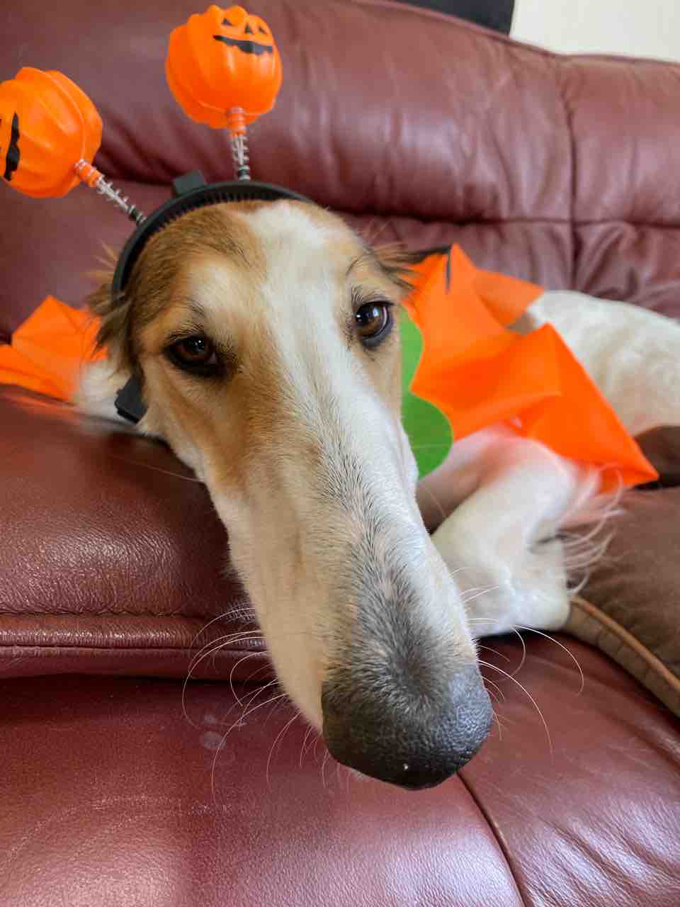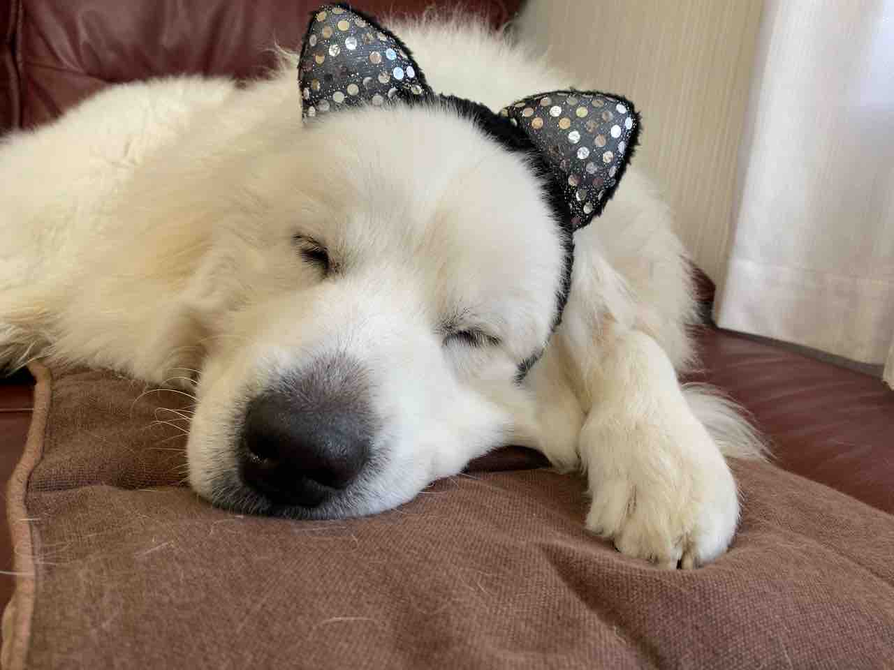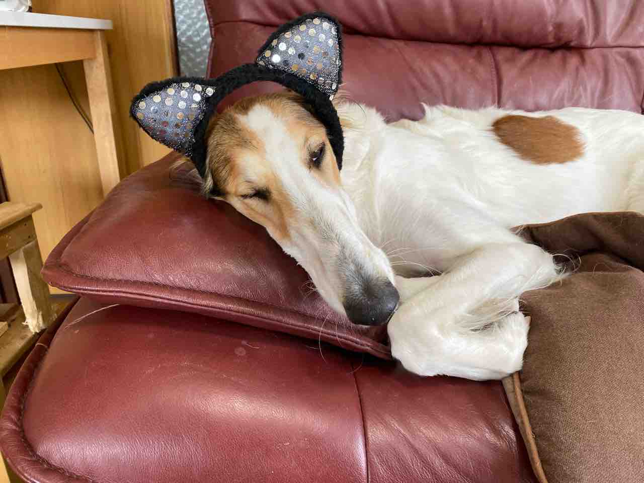 そう❣️我が家のワンコ達は小さい時から被り物に慣れさせられ、表情はともかく、逃げなくなります(笑)