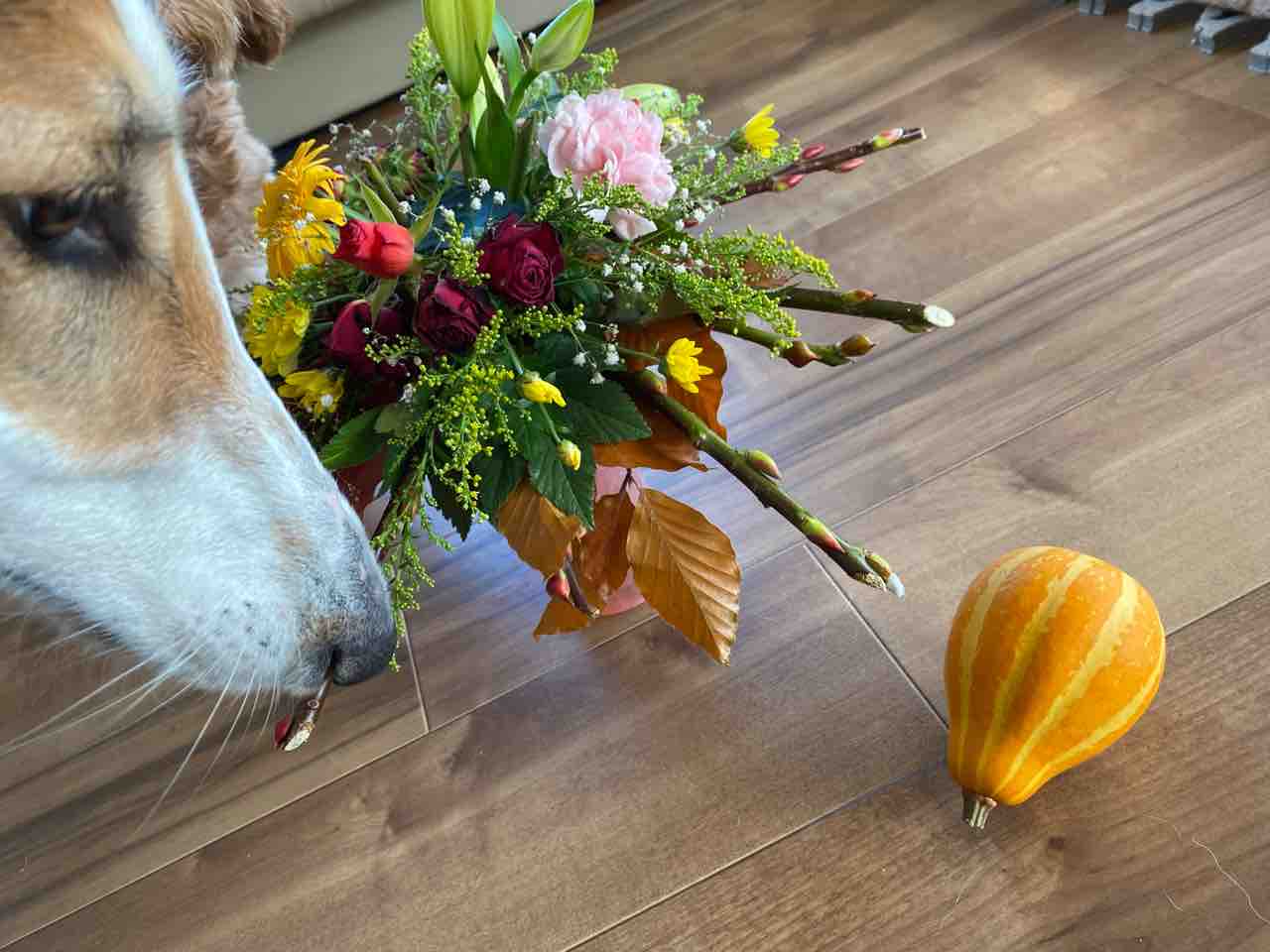 アレンジ真ん中にカボチャがデーン💨と座っていらっしゃいます🎃