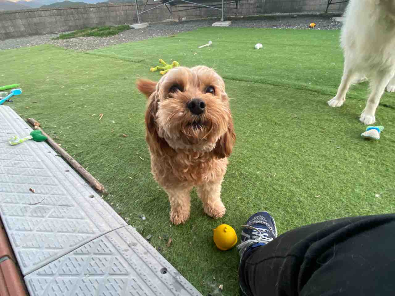 我が家のワンコ達は甘えると膝に座りに行くので、まだ小さい💜ちゃんには大変です💦