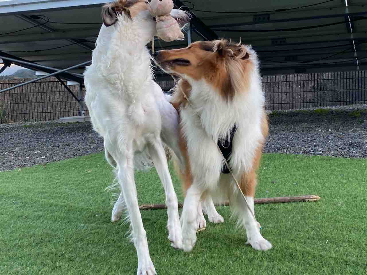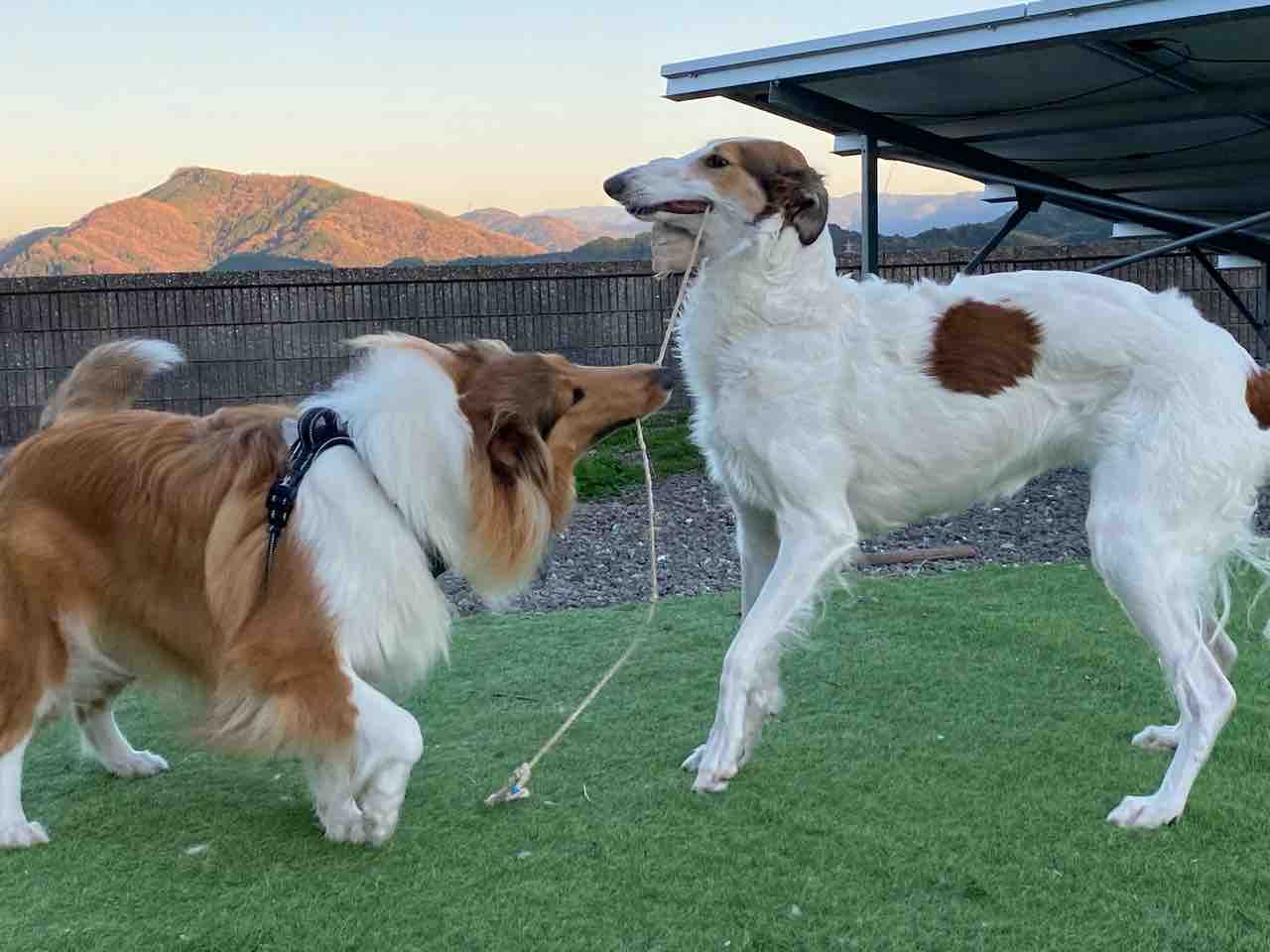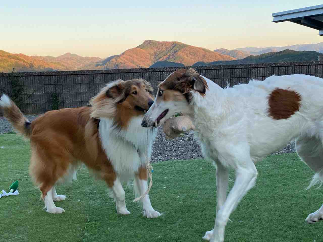 ❤️🐶ちゃんとミシェルが真剣に遊んだら、❤️🐶ちゃんぶっ倒れるから〜😆💦ミシェルなりに気遣った遊び方してると思いますよ😅🤚❤️🐶ちゃんもわかって相手してるように感じますが💓犬は犬同士🐶🐶仲良いと思います😊