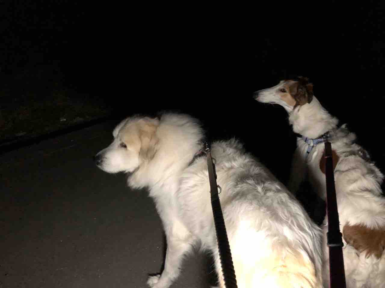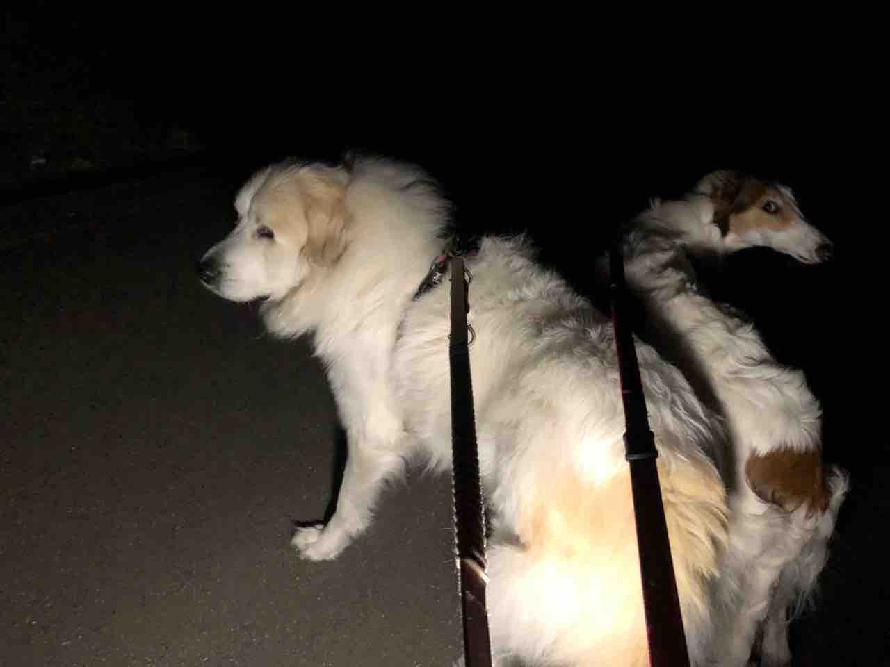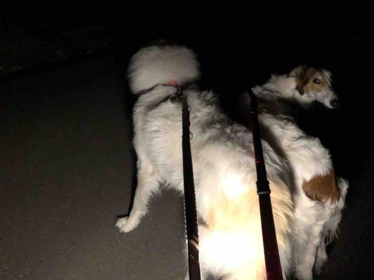 燃える様な夕陽と夜散歩を楽しむワンコ🐶 2022年01月05日 昨日は仕事初出勤でした。仕事場から夕陽が沈んでゆく様子がものすごく綺麗で、思わず携帯を握りしめ外に出て写真を撮りました。朝日が昇ってくる光景に手を合わせ、沈みゆく姿に心動かされ…太陽って生きるパワーそのものですね✨私が夜まで仕事だった為、シロクマ父さん🐻❄️夜散歩をしてくれたようです🌙サマンサとミシェル🐶ミシェル…反対方向向いたらうなぎみたい😂 ミシェル、うなぎじゃないでちよ🤚‼️あ!蛇か🐍