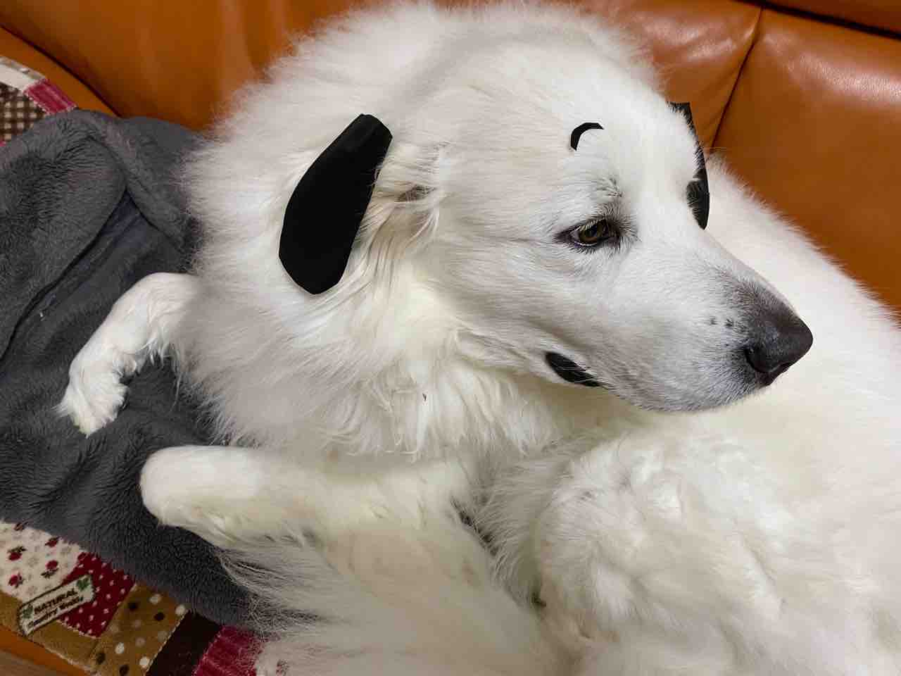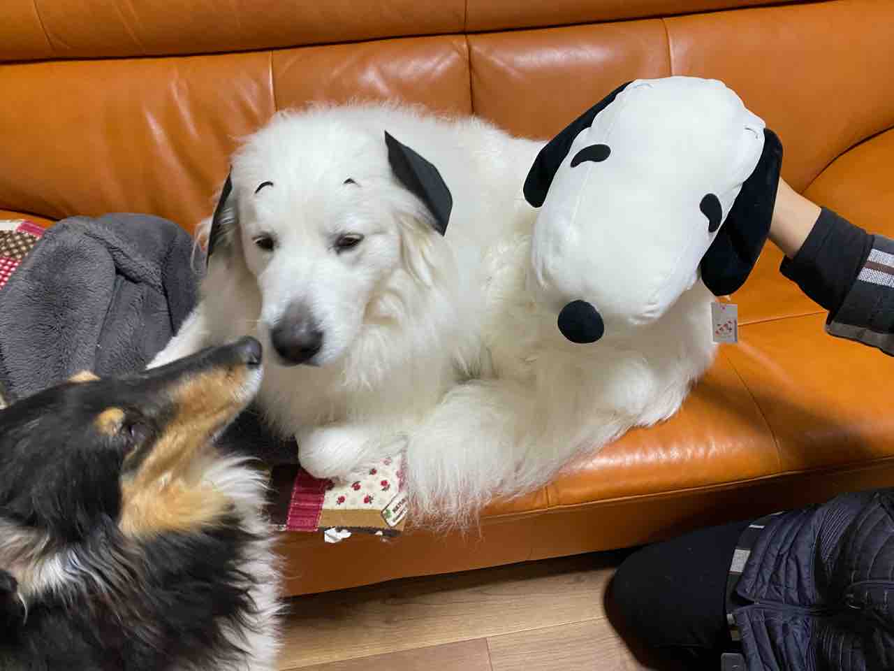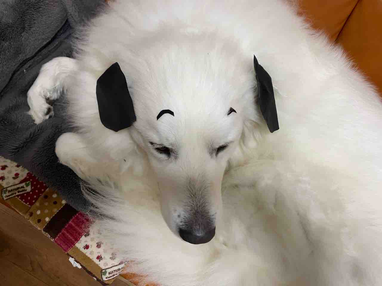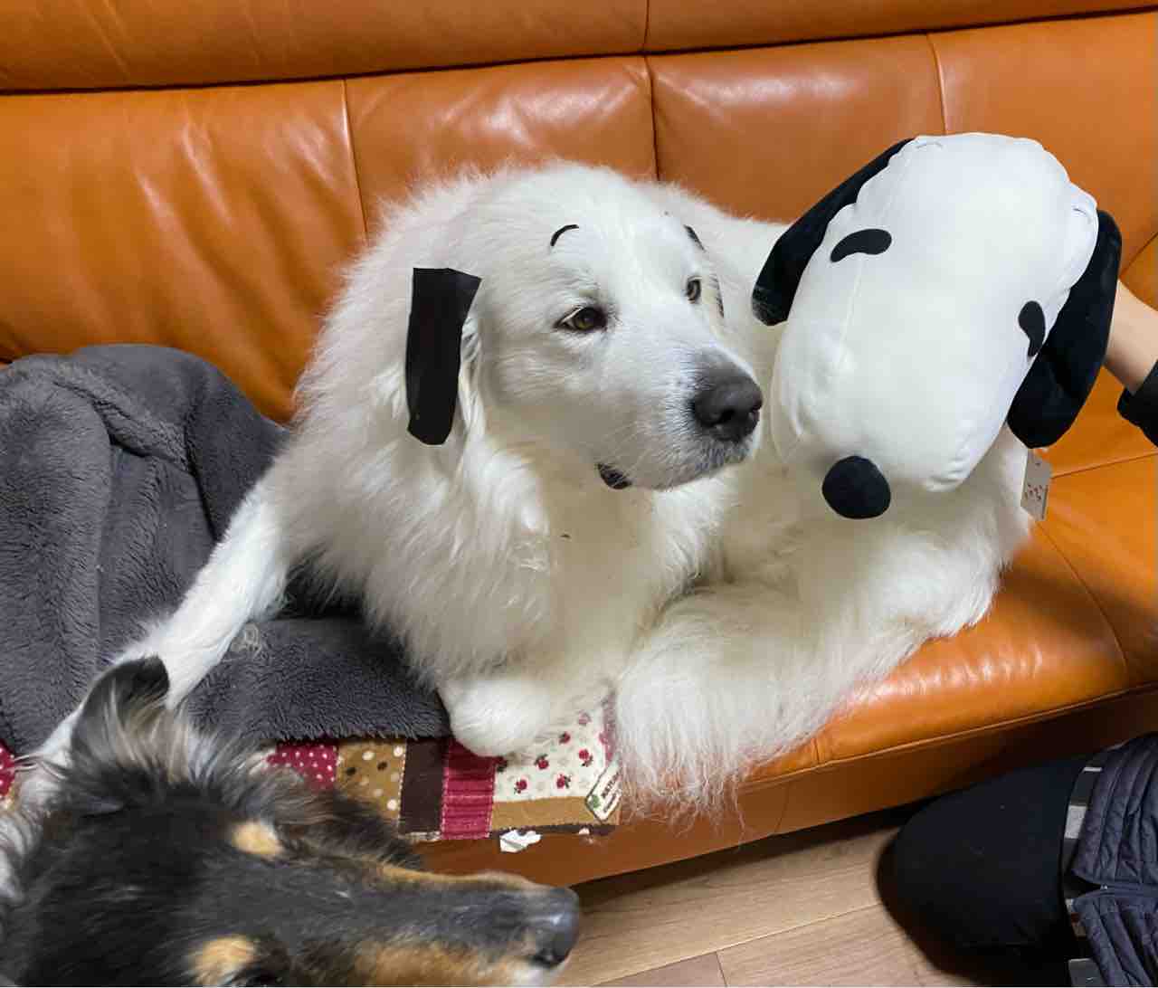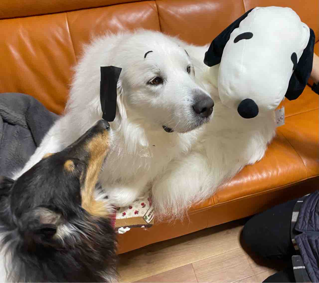 黒い布をパーツごとに切り、完成しました我が家のスヌーピー🐶