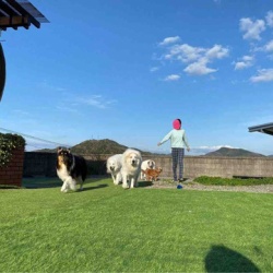 みんなルンルン🎶 2021年03月26日 空が青いです✨✨✨晴れた日はお外が気持ちいい✨オモチャで遊んで🎶一緒に走って💨楽しいねぇ🎶フローラも満面の笑み💓ふっちゃん、ボール⚽️いっぱい投げてもらって大満足でしゅ💓ちょっとまぶしいんだけどね💦綺麗にしてもらって✨(ブラッシングしてもらってます)お腹も ... もっと読む