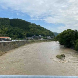 朝の記事の現場へフローラ&サマンサと来ましたー❗️かなり水位は下がったものの、濁流の速さに足がすくみます💦フローラが身を乗り出して観察中🌀こわいからやめて〰️〰️😱💦サマンサの反応はと言うとね…いつもよりお散歩コース長くて〜疲れたから〰️💦だそうてす(๑> ...