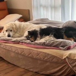 今朝の犬部屋🐶サマンサとリタさんが仲良く添い寝していました\(//∇//)\💕 可愛くて、思わずパチリ📸リタさんの頭がサマンサのおちりについてる❣️信頼関係があればこそ💓見ていて微笑ましい光景です。お寝坊のミシェルはマイベッドで💤ももち🍑頭落ちそうよ💧ジ ...
