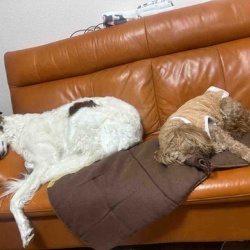 丸一日雨だから…もう寝れないのか、私がソファに座るとワンコ達がやってきます💧リーダーフローラ❣️ソファの肘掛け陣取り、私の足を踏み締めてこの睨み💦 母さん! 雨、止まないんですけど💢 (フローラ)そんなこと言われても〜💦てるてる坊主でも作る? ももちもひま ...
