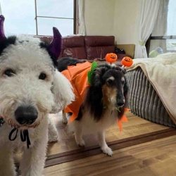 今日は雨だけど…我が家に可愛いオバケがやってきましたよ(*´꒳`*)コスプレの女王は、私の出番ですわね☝️✨と、率先してマントを巻かれ、頭にカボチャつけられて〜はい、一枚✨今年はももちもやる気満々⁉️(笑)母ちゃん‼️お菓子くれなきゃいたずらするでつよ💨 ...