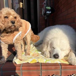 第一陣☝️朝日バックにももちとミシェル今日は暖かくてとっても気持ちいいお天気です☀️なんだか…寒くないでちね☀️ (ミシェル)ね〜🎵母さんにとっては有難い!第二陣は…サマンサとジニーと、りたさん❣️大型犬3頭引き ψ(`∇´)ψ母さん、まだまだ若い⁉ ...