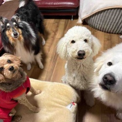 ワン友さんに、うちの子は食べなかったから、食べて〜といただいた「牛タン皮ジャーキー」なんて有難い(*゚▽゚*)💕早速皆さんに配給🥩なんだかいい匂いする〜🎵と、みんな期待大✨珍しく、サマンサ(右)も直ぐにやってきた❣️まずはリーダーフローラからね💕パリッパリで、割 ...