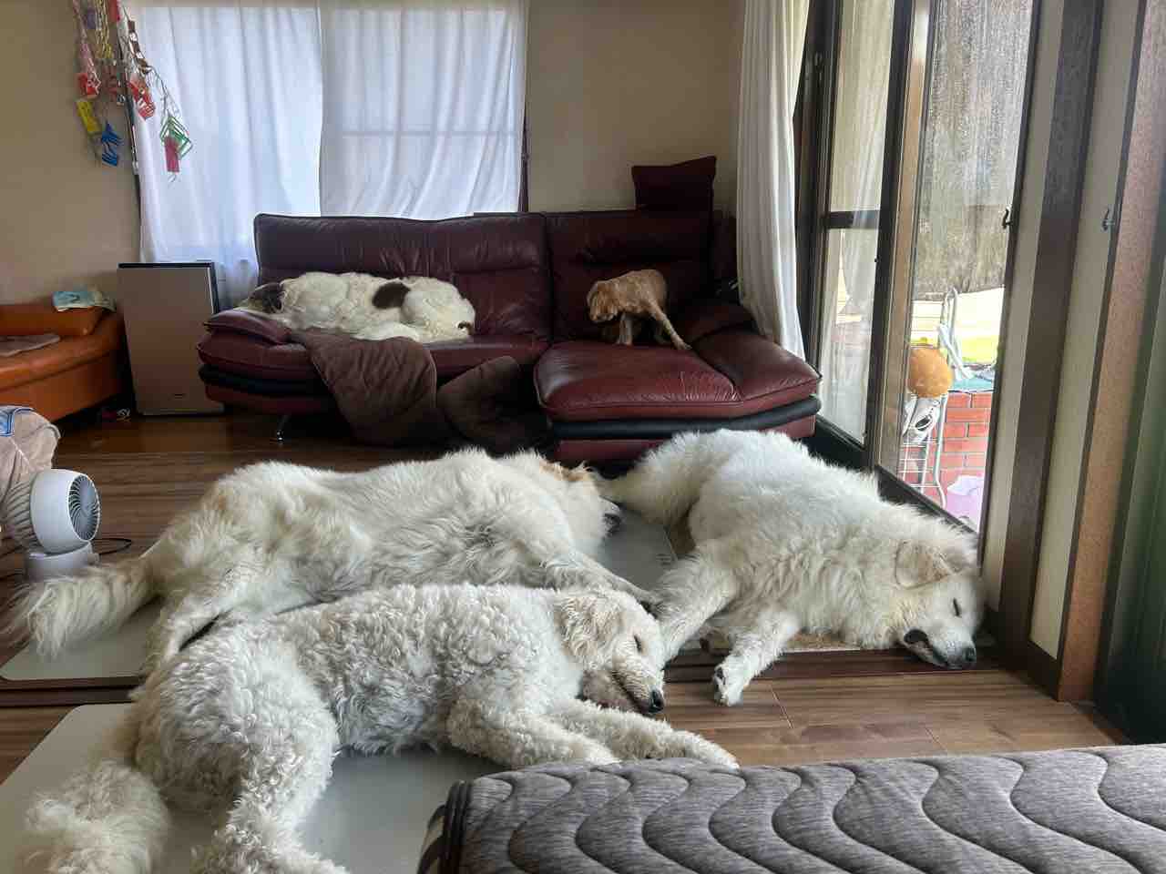 今日のお昼寝風景🐶🐻❄️🦭 2024年08月03日 午後2時半過ぎ…今日一番暑い時間かな⏰エアコンの効き悪くじーっとしていないと動いたら暑い🥵ワンコは全身毛まみれだから…お腹も暑いももち、ひっくり返る🌀つられてジニーもひっくり返る(右)ジニー💧どう見てもあざらしがひっくり返って寝ているようにしか見えない🦭ももちもすっかり我が家の子 (//∇//)💦一番涼しく過ごしてるリタさん❣️サーキュレーターの風浴びて気持ち良さそうです🌀6時前まで…みんな寝るしかないね💦 < 前の記事次の記事 >