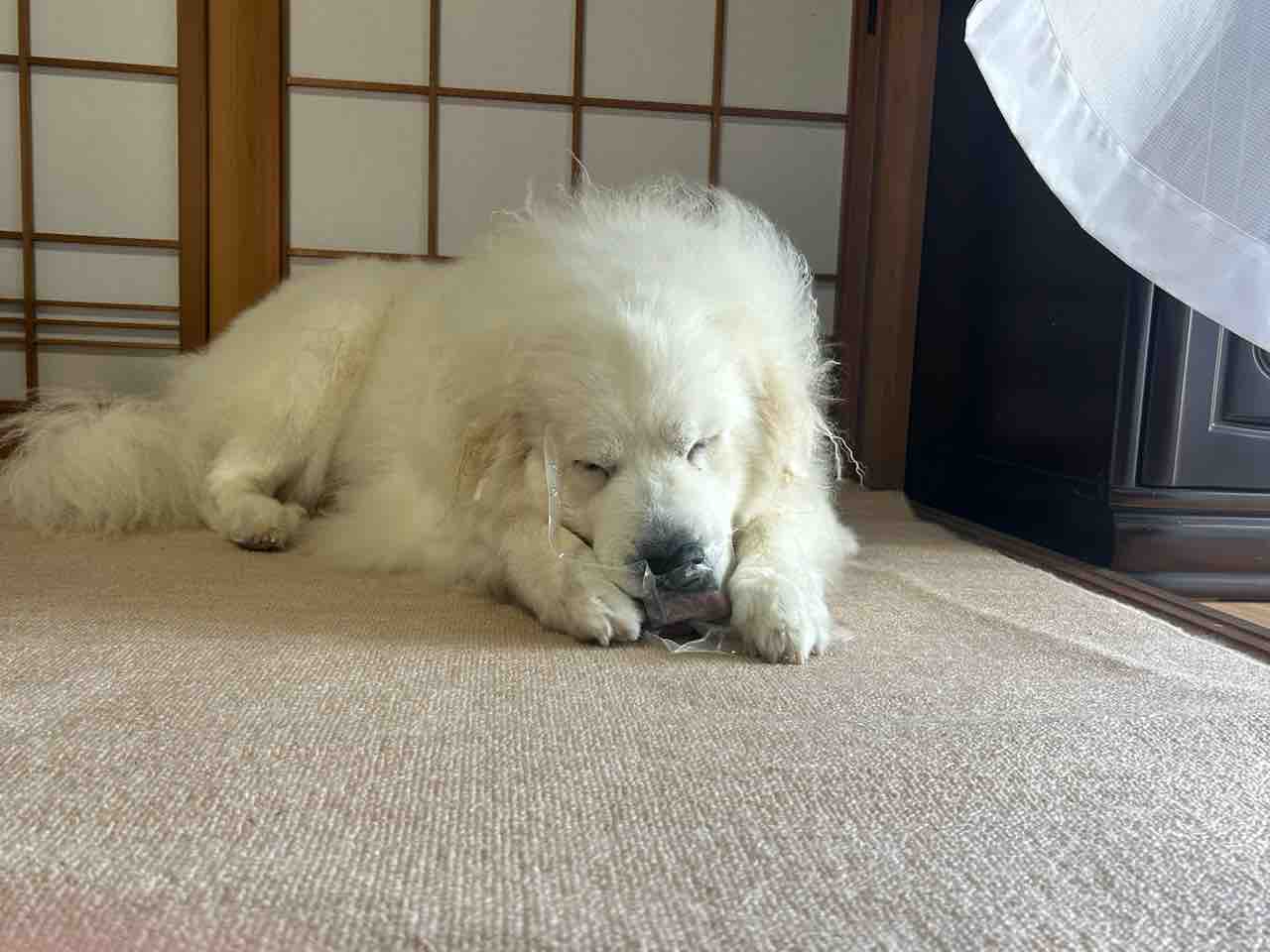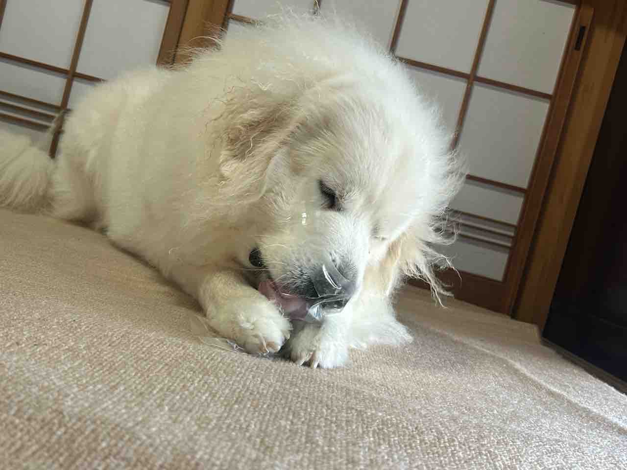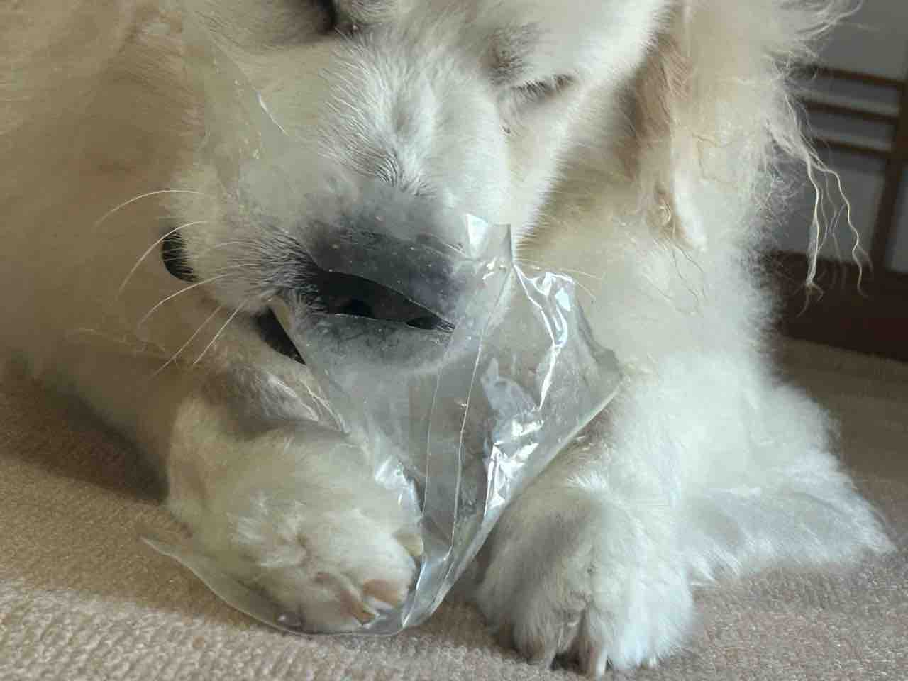 ジニーの意外な一面☝️✨ 2024年10月10日 今日は爽やかな秋晴れ☀️東側から心地良い風がカーテンを揺らしてます。ふいに…和室でバリバリと破壊音💥なんだ⁉️ なんだと駆けつけてみると…ジニーがオヤツ入ってた袋をプラごみから出して食べていた(ーー;)ナイロンを食べちゃうことはないのでそのまま様子見🌀両手で押さえて、可愛いです💕バリバリ💥バリバリ💥ググーッ💨💨むちゃくちゃ引っ張ってます💨💨フガーッ🌪️なかなか楽しそうです (*´꒳`*) < 前の記事次の記事 >