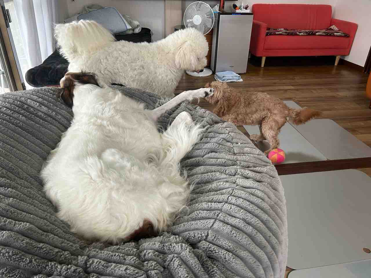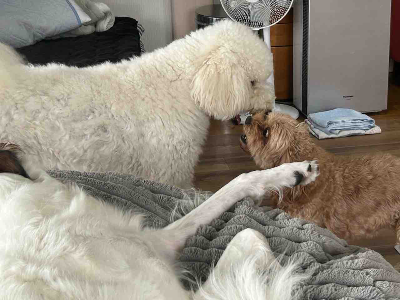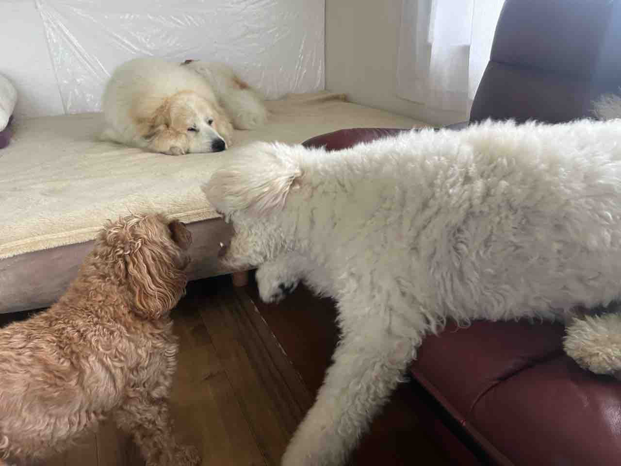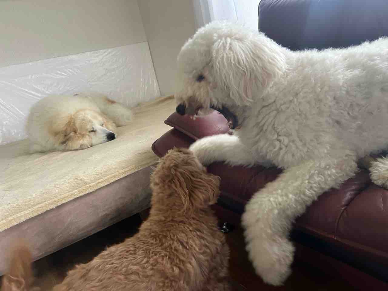 フローラの性格上、売られた喧嘩は買うタイプなのでしばらくはガウガウ💥うるさい犬部屋でした🐶