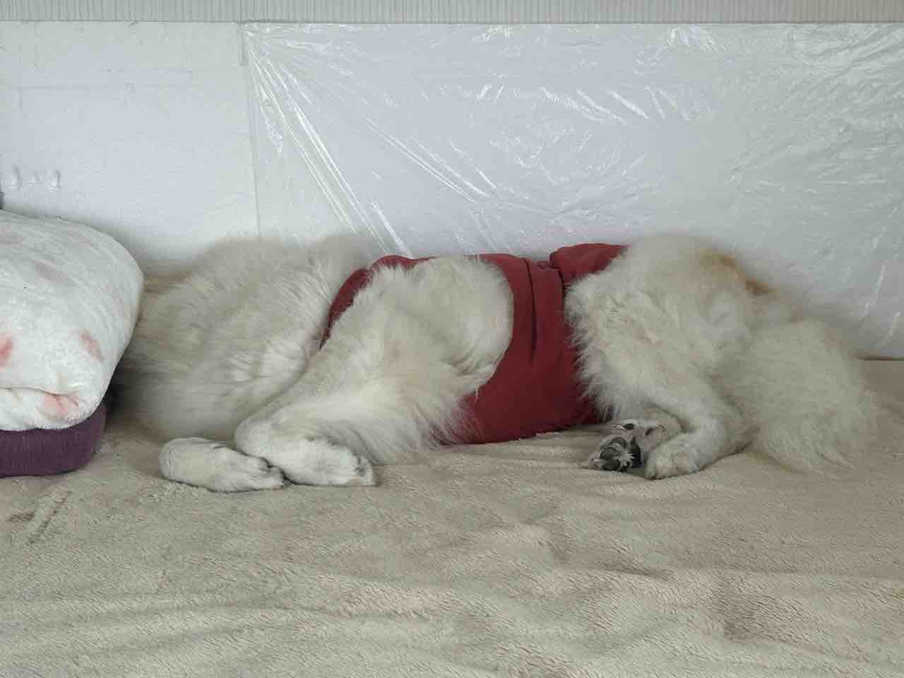 昨日は雨でジメジメしていたから…術後服着せちゃいました(≧∀≦)V