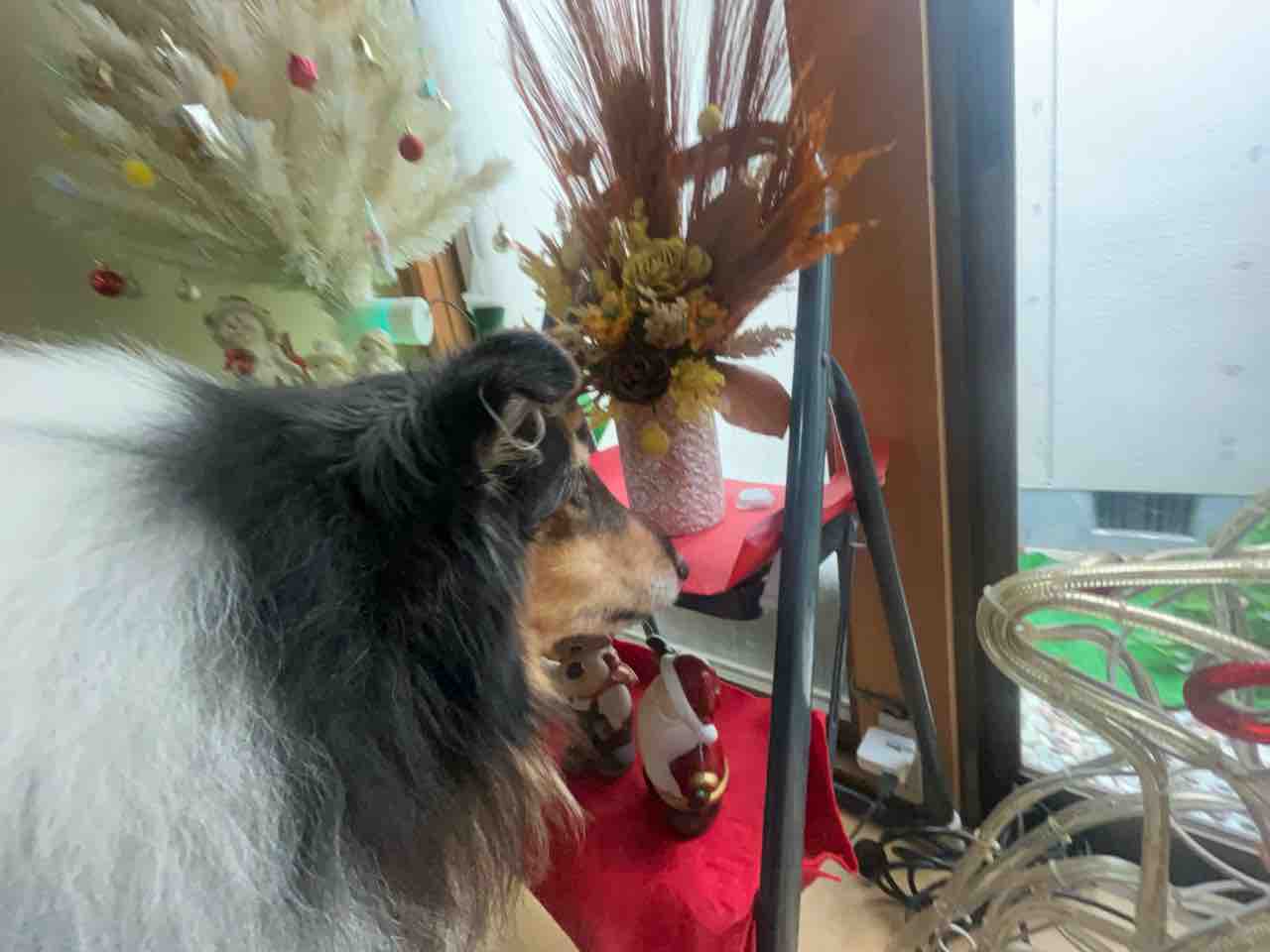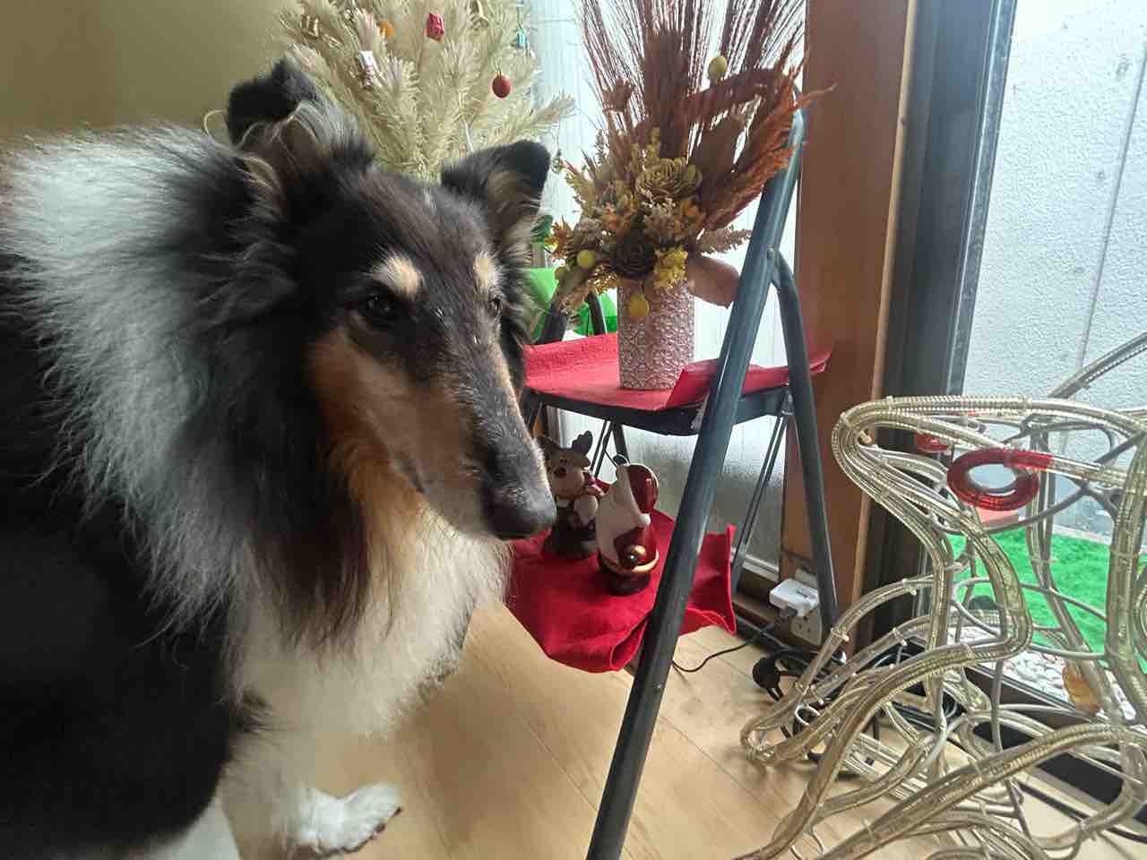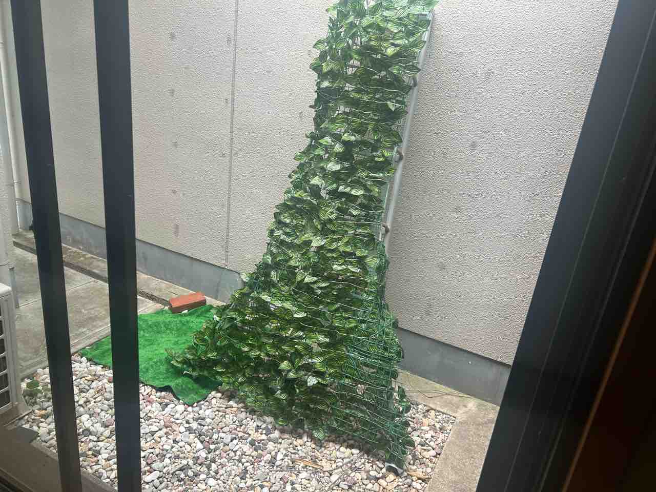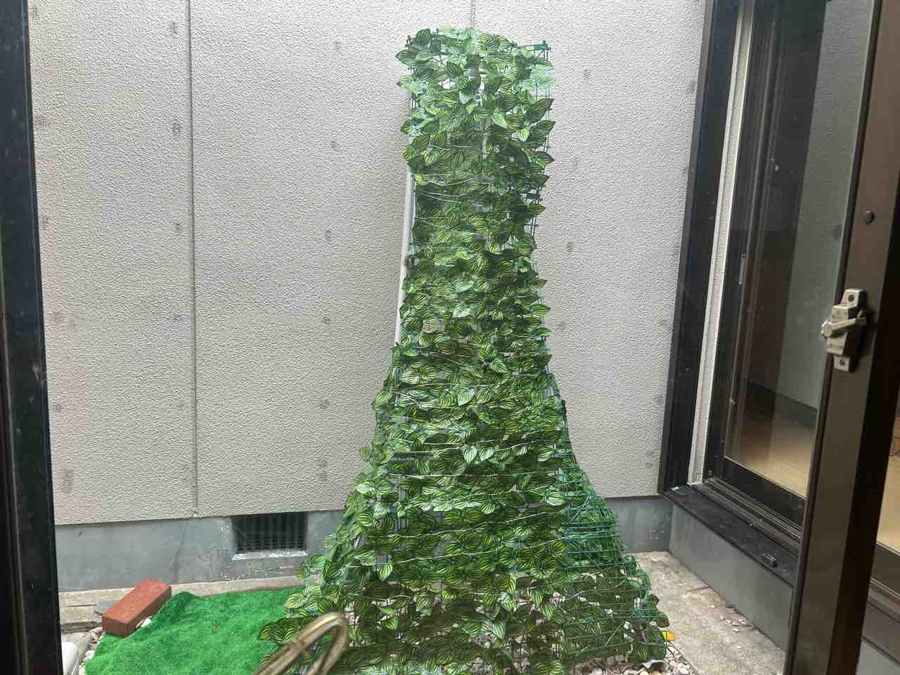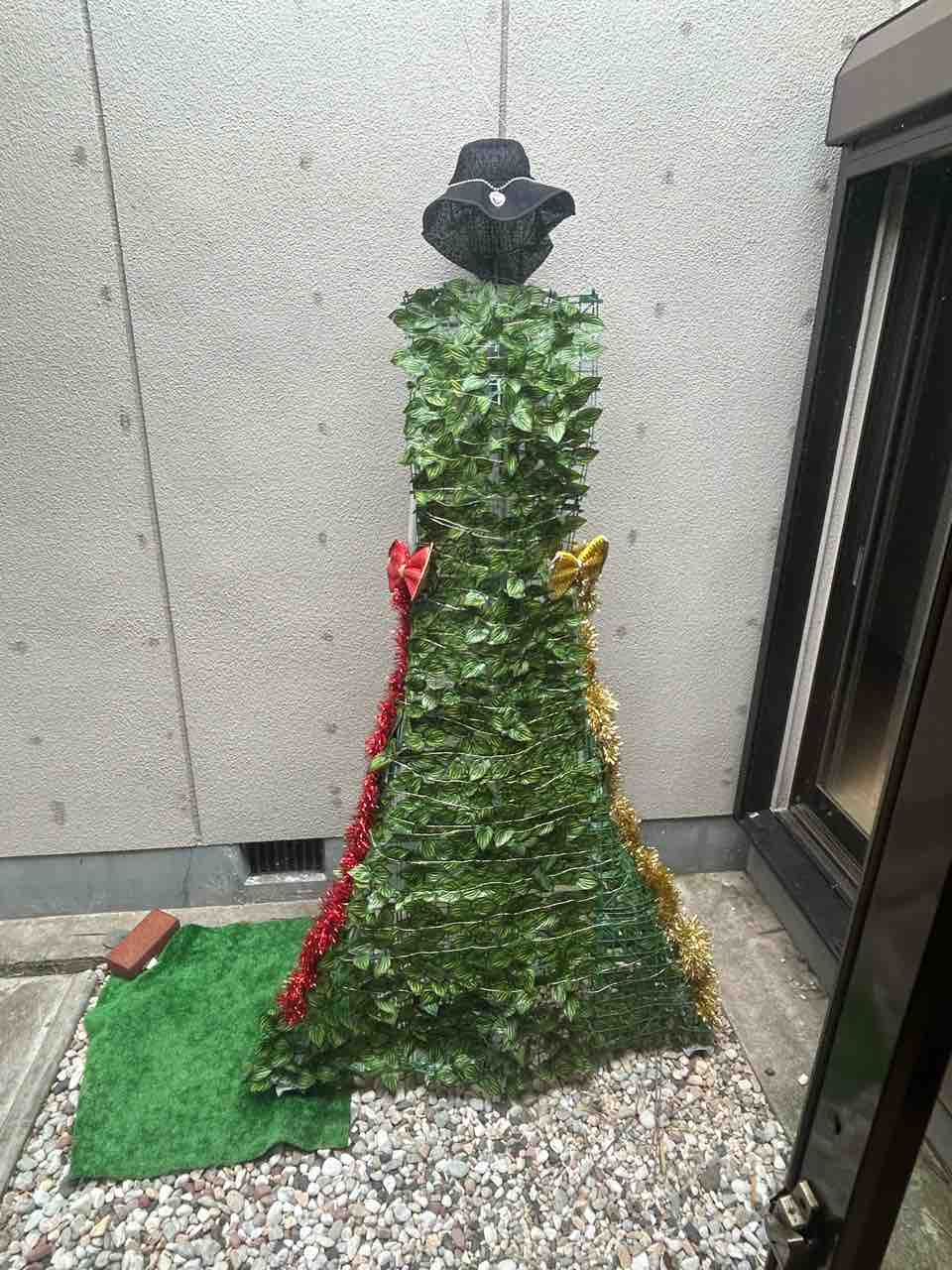 脚立に目隠し用グリーンを結束バンドでつけたツリーもどき(笑)💦