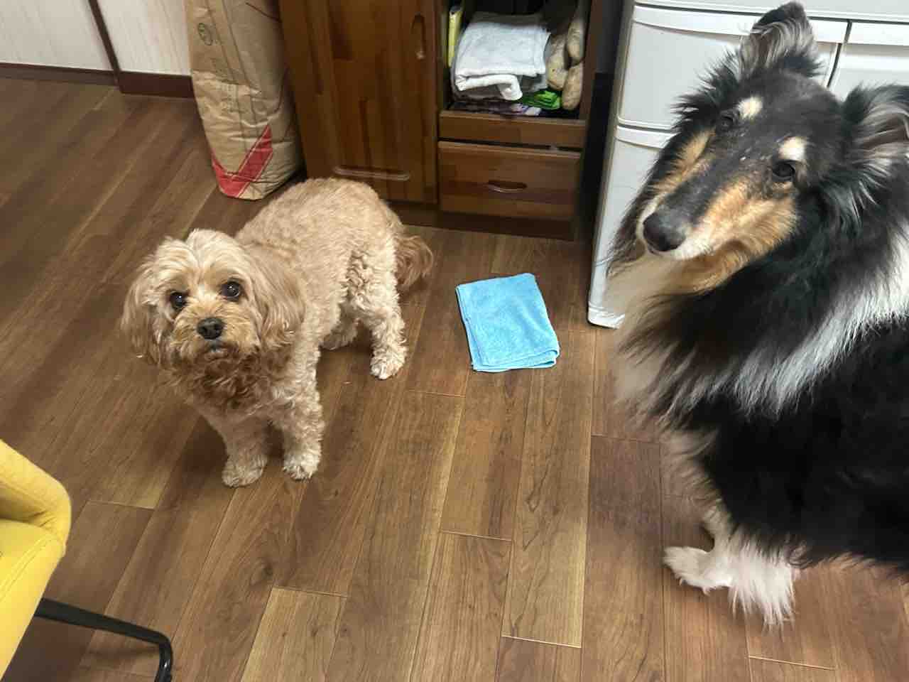 結果、ミシェルがプラのゴミ袋破壊し、ももちも一緒にあさった模様(ーー;)