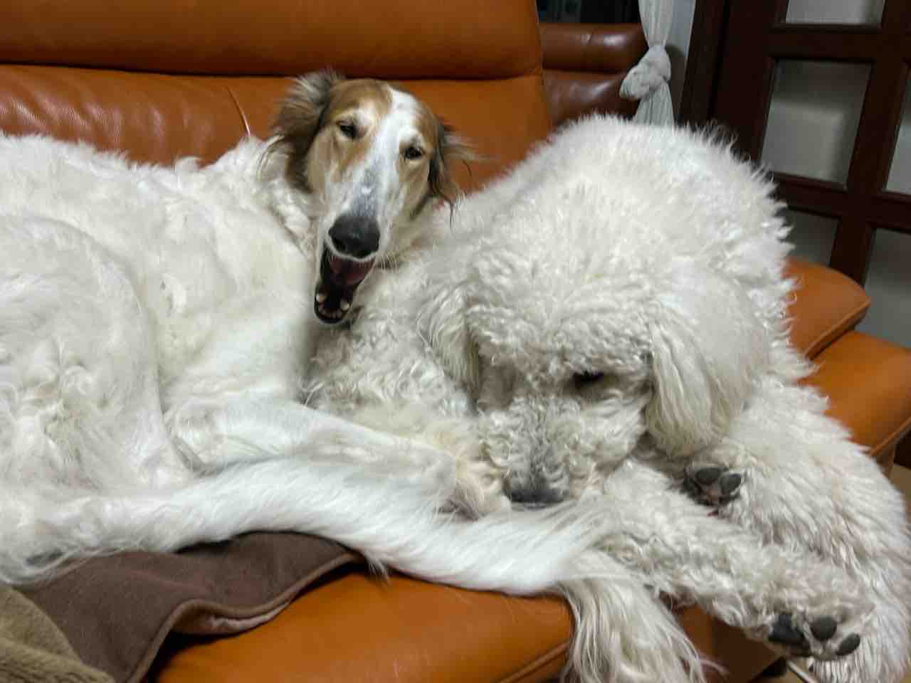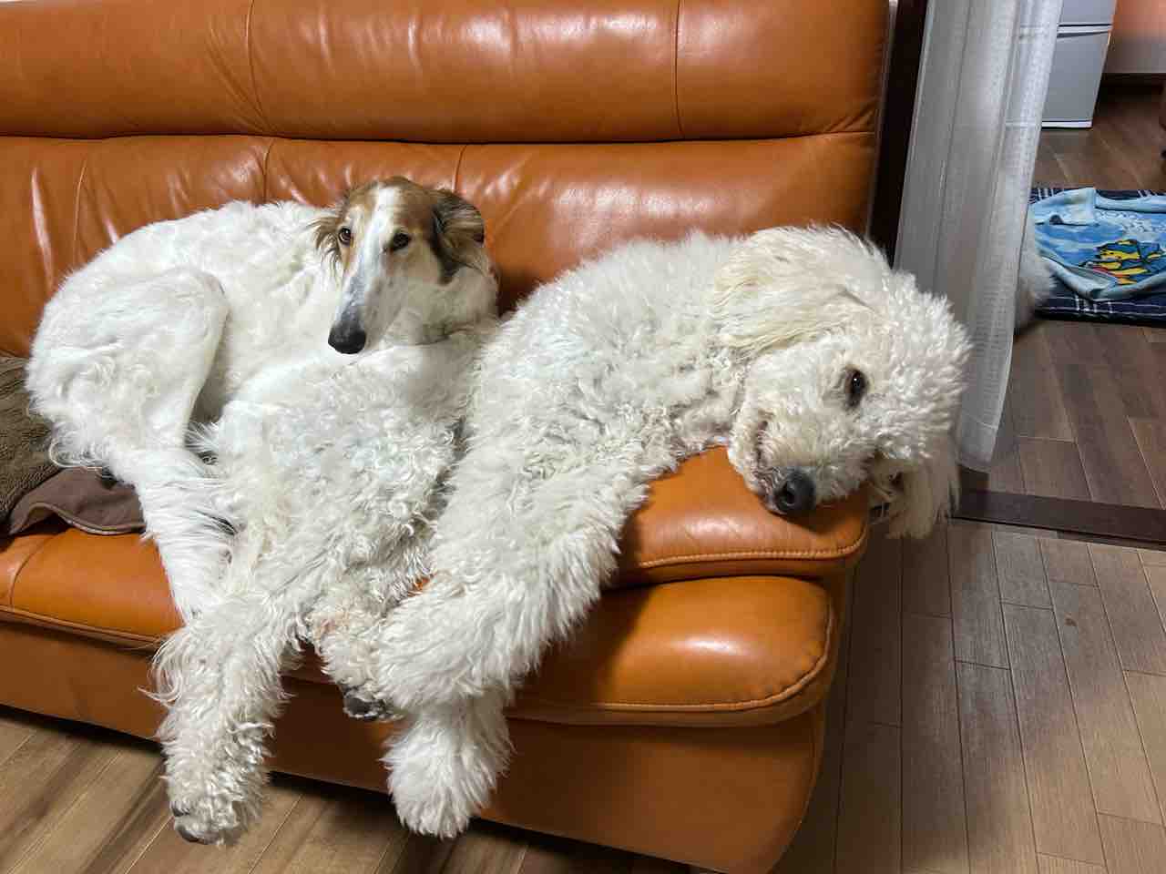 ミシェルの湯たんぽ代わりでちねー♨️姉ちゃん邪魔でつ💢