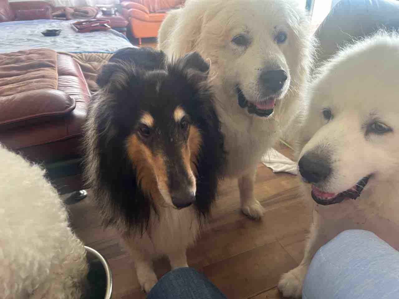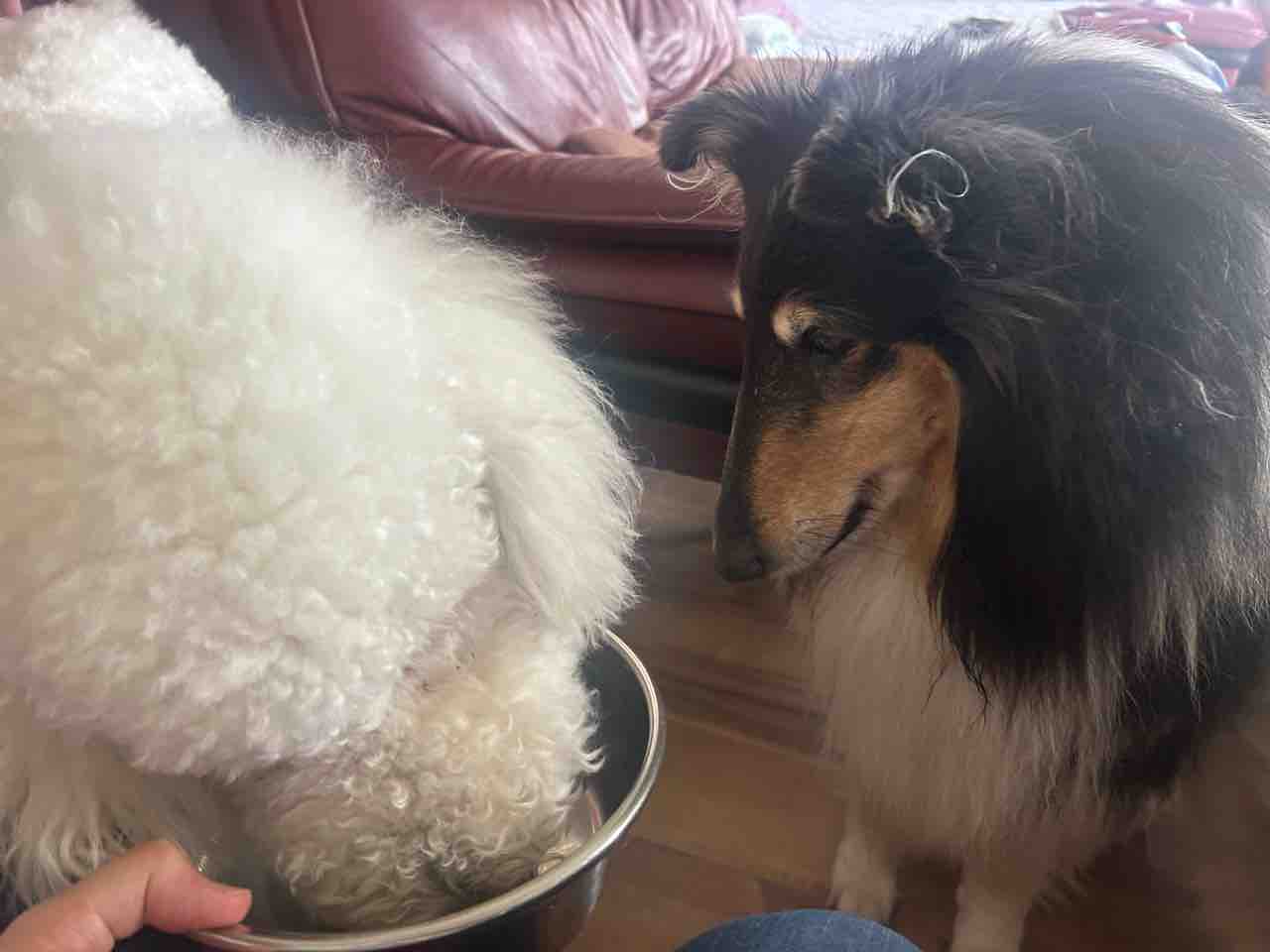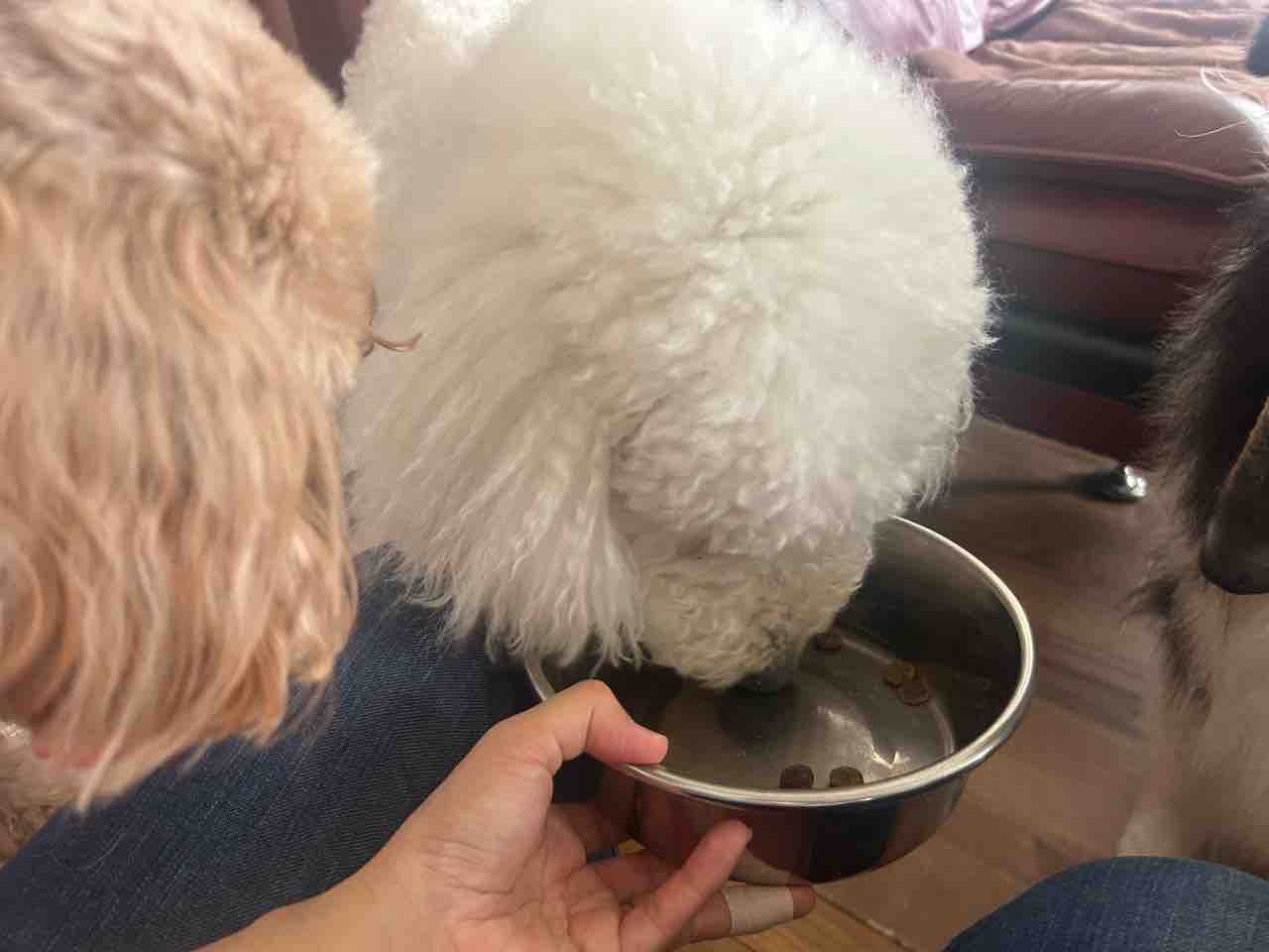 朝ごはんだけ、食べるのを渋るももちのご飯に群がるその他皆さん(⌒-⌒; )