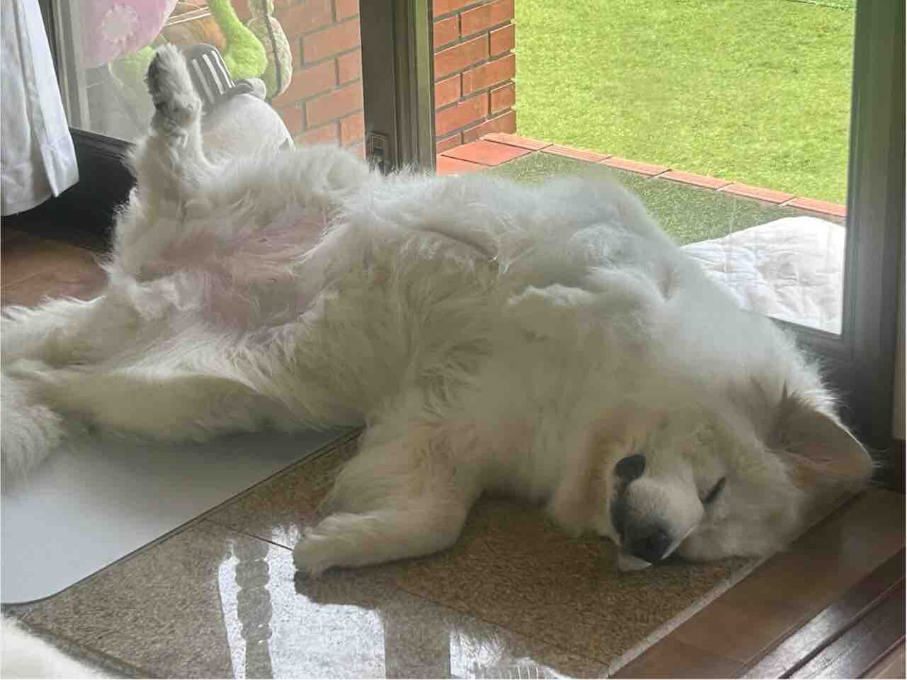 いつもはバテバテで、お散歩も行かない日が多くなり心配するんだけど…今年はうまい具合に只今換毛期なので毛量は半分!
