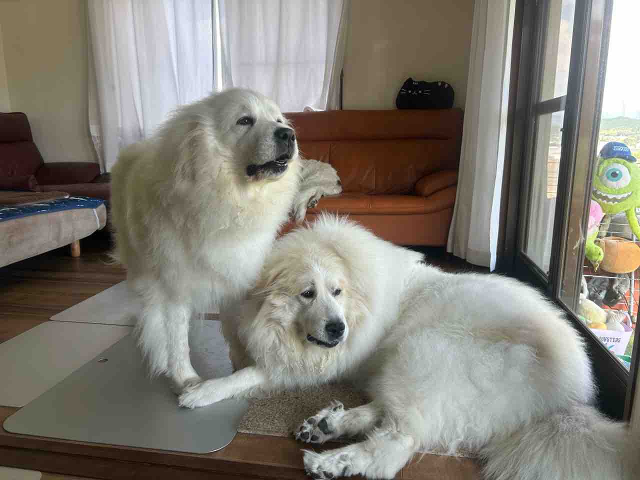 犬部屋から見える坂道を眺めるサマジニ🐶