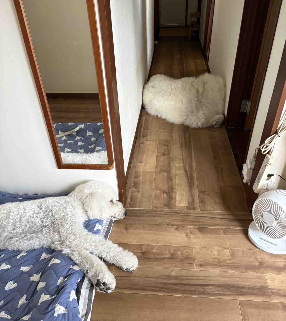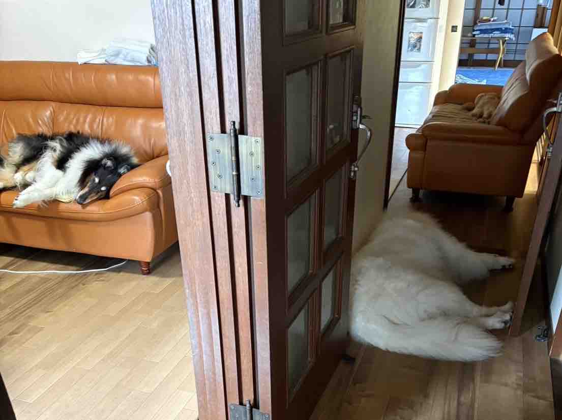 屈折したサマンサ( ̄▽ ̄;) 2025年10月07日 お昼寝中のワンコ達🐶リタさん(ソファ)とジニーももち(左)と…サマンサ⁉️なんだか…廊下に挟まってない❓サマちゃ〰️〰️ん💧なぜ、そうなったの?これは…くるしいでしょ💦サマちゃ〰️〰️〰️ん(´Д` )💦 < 前の記事次の記事 >