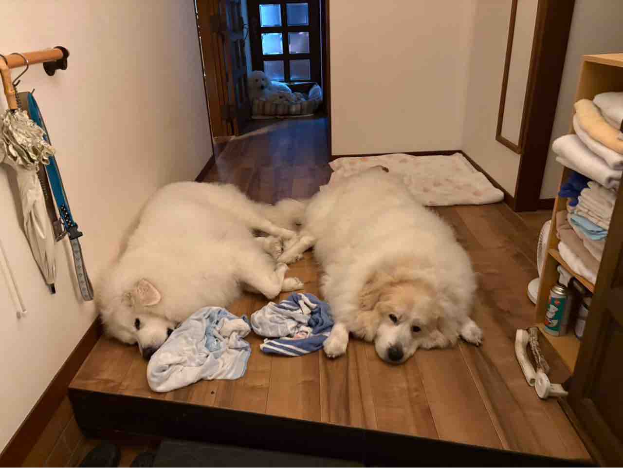雨の日のお留守番🐶🐶 2025年11月06日 日が暮れて…私の帰りを待つサマジニ🐶🐶 (父さん撮影)外は雨で出れない…母さん…まだぁ? て感じ(⌒-⌒; )廊下の奥では⬇️ワンコベッドでももちが丸くなっている🌀日暮れが早くなり暗くなるとワンコ達は不安になるから…これからの季節仕事に出かけるのが辛い母さんです(´°̥̥̥̥̥̥̥̥ω°̥̥̥̥̥̥̥̥`) < 前の記事次の記事 >
