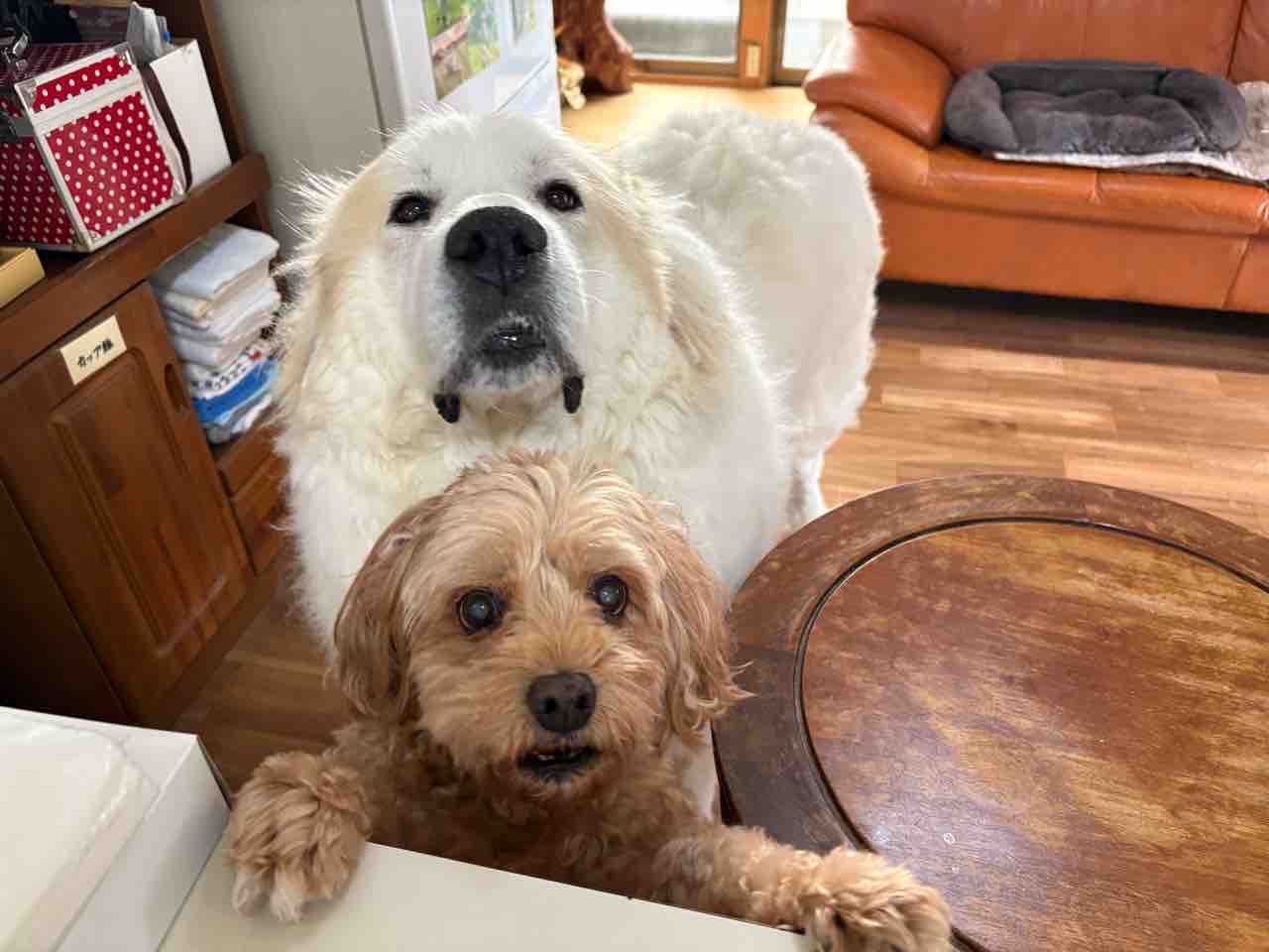 おやつおねだり中の中高年組(笑) 2025年11月08日 お買い物から帰ってきたら、必ず何かもらえる!と思い込み、わらわらと集まってくるワンコ🐶特に、フローラ‼️最近はめっきり耳も遠くなり、食べるか寝るか…只今、食べる‼️が脳内を優先しているみたい…背伸びしてカウンターへしがみついてます💨弟妹達はみんな大きいから負けてられないからねぇ〜🌀ほらほら❣️ここ一番の笑顔で攻めてきましたよー💨フローラ&サマンサ中高年は食欲の秋全開です(*^^*) < 前の記事次の記事 >