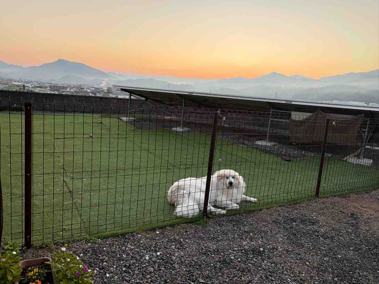 静寂の中のサマンサ🫧 2025年12月01日 6時30分…東の空が明るくなり、重なる山々のグラデーションが綺麗に見えました。なんだか…高野山みたい…早朝から元気印なももち🍑若いって、無敵だなぁ✨こちら早朝からお仕事中のサマンサ❣️サマンサ〜芝ビチョビチョなんだよ〰️〰️💧下の道ではまだ車も通らず、人が出す音が全くない音のない世界…空気がピーン!と張り詰めたような静けさが心地よくて…自然界の夜明けのような空気感を体験できた朝でした✨サマンサ…くつろいでないで、お家へ入ろ💨 < 前の記事次の記事 >