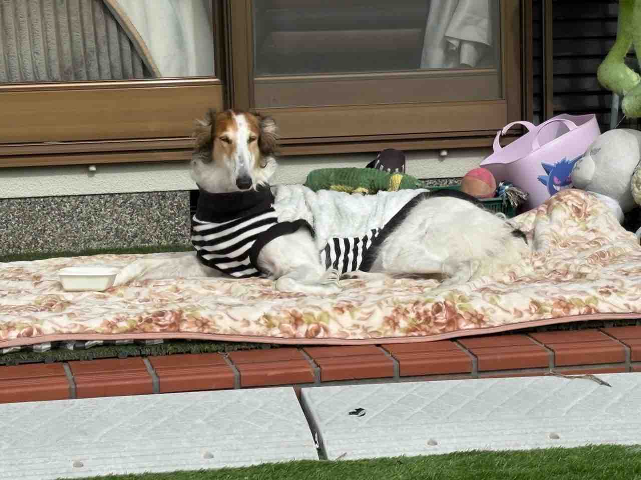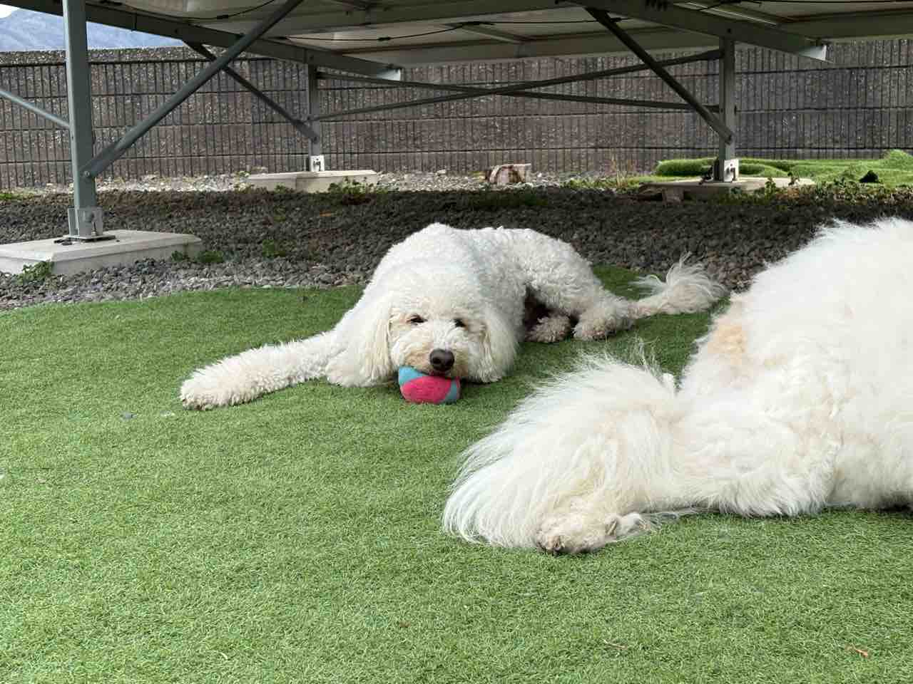 ワンコ達、みんな中庭で日向ぼっこ
