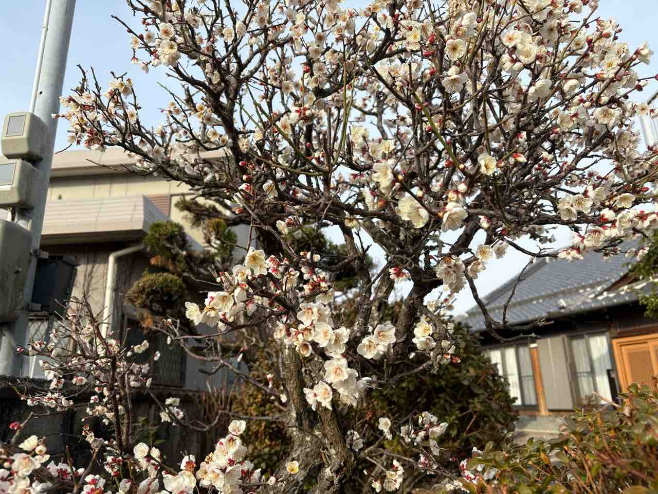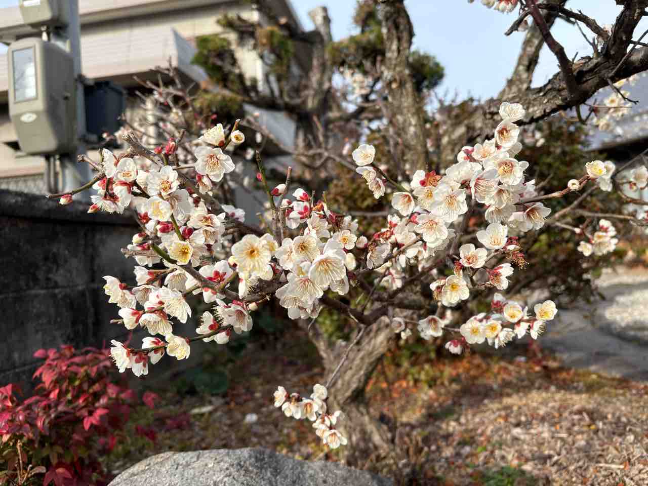 知らない人のお家の庭で梅の花満開でした。