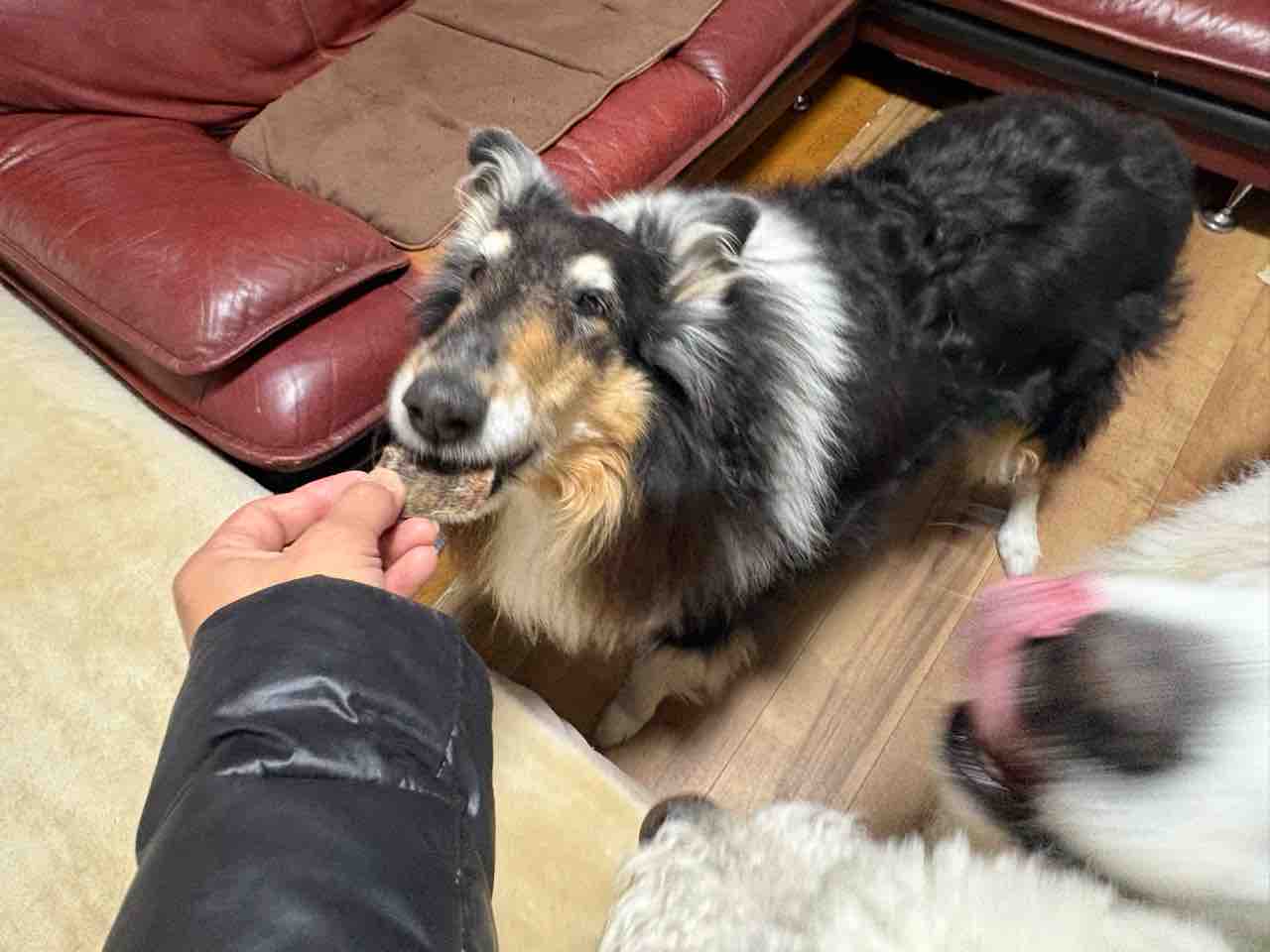 パリッパリで、割って与えれるのでサイズ調整出来ていいですね〜👍